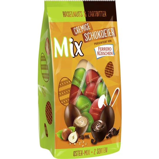 Zutatenverzeichnis: NOGGY FERRERO KÜSSCHEN EGGS DARK Zutaten:Halbbitterschokolade 45 % (Zucker, Kakaomasse, Emulgator Lecithine (SOJA), Vanillin), Palmöl, fettarmer Kakao (12 %), Zucker, SÜSSMOLKENPULVER, Emulgator Lecithine (SOJA), Vanillin.Kann GLUTEN, EIER, MANDELN, HASELNÜSSE,WALNÜSSE, KASCHUNÜSSE, PECANNÜSSE, PARANÜSSE,PISTAZIEN und MACADAMIANÜSSE enthalten. Zutaten:NOGGY FERRERO KÜSSCHEN EGGS HASELNUSS Zutaten:VOLLMILCHSCHOKOLADE 45 % (Zucker, VOLLMILCHPULVER,Kakaobutter, Kakaomasse, Emulgator Lecithine (SOJA), Vanillin),Zucker, HASELNÜSSE (15,5 %), Palmöl, SÜSSMOLKENPULVER,Emulgator Lecithine (SOJA), Vanillin.Kann WEIZEN,EIER, MANDELN, WALNÜSSE undPISTAZIEN enthalten.